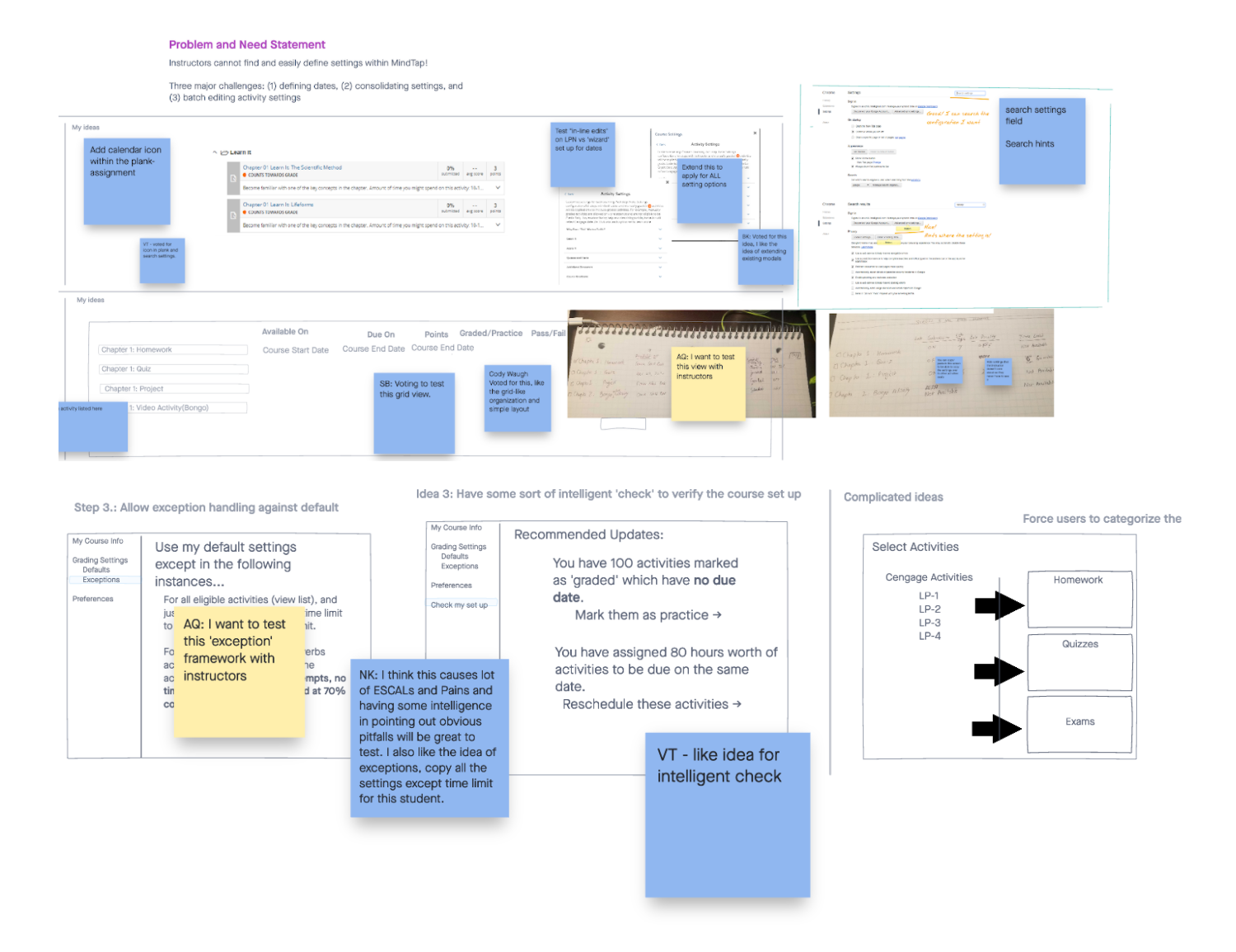 Because activity settings within MindTap are complex, I conducted a design workshop with our stakeholders and engineers. In this workshop, everyone sketched out potential design solutions together.
