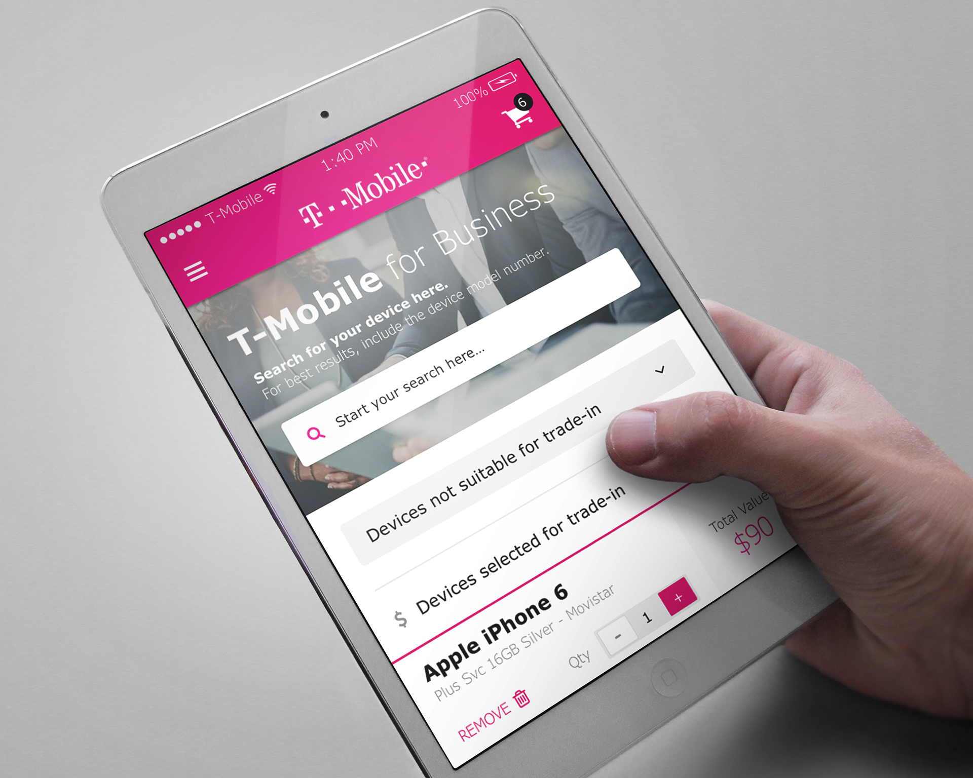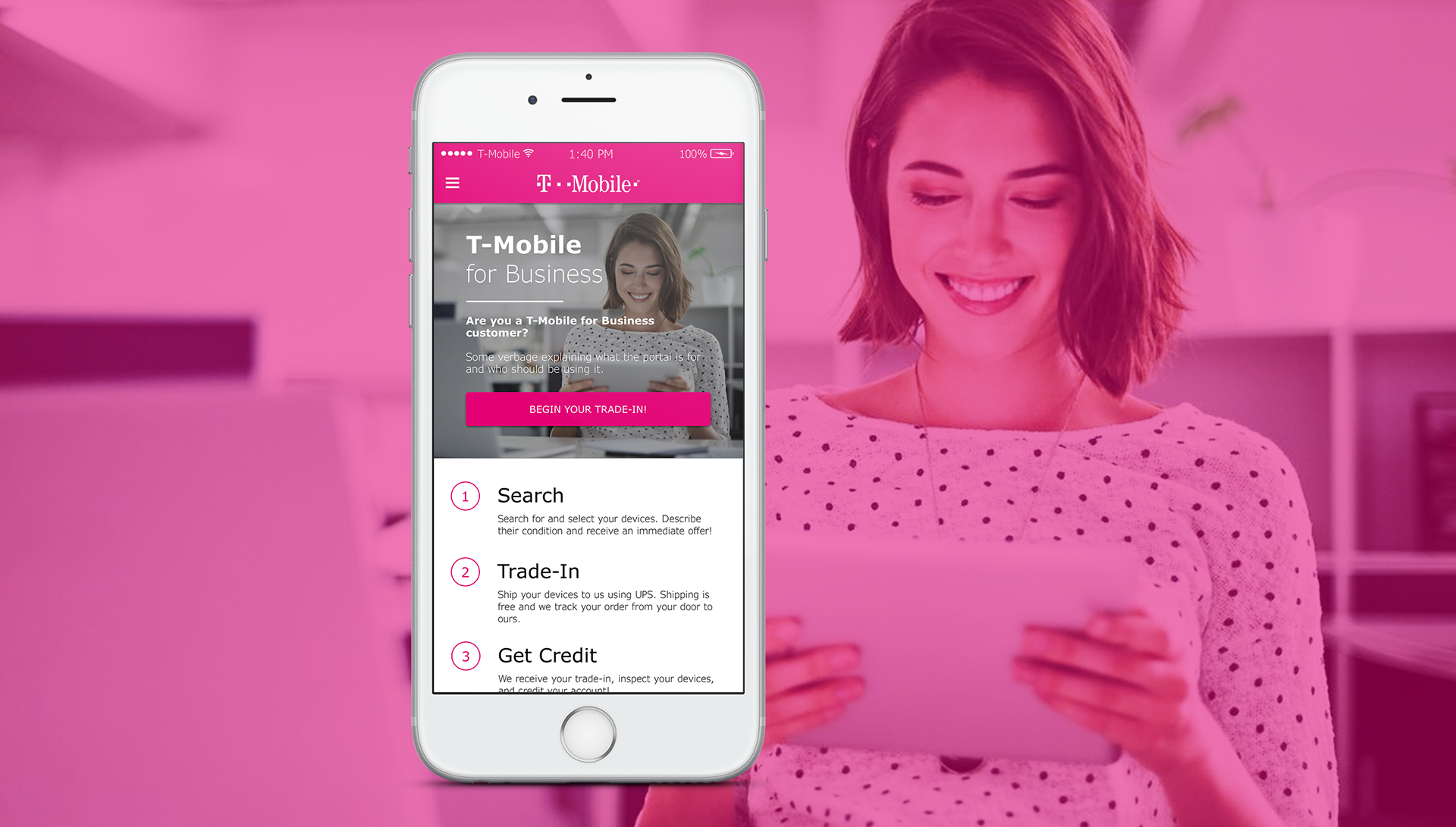 The T-Mobile for Business Bulk Trade-In portal successfully launched. The portal guided customers through the process one step at a time, provided them with an on-the-spot estimate of their trade-in value, and handled many of the logistics of shipping out their upgraded devices.